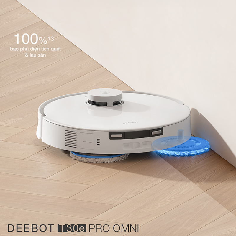 Điểm nổi bật của công nghệ TruEdge™ là khả năng tự động mở rộng chổi cạnh và khăn lau giúp robot bao phủ gần như toàn bộ không gian đang làm việc ngay cả với những khu vực khó tiếp cận như góc tường, mép tường hay những kiến trúc có thiết kế hình cánh cung. Cơ chế hoạt động của công nghệ này có thể hiểu đơn giản là khi gặp các khu vực có thiết kế phức tạp, khó vệ sinh, khăn lau của robot sẽ tự động co giãn một cách linh hoạt nhờ hệ thống cảm biến thông minh, giúp Ecovacs Deebot T30e Pro Omni tính toán chính xác khoảng cách di chuyển, tránh va chạm với các vật cản tăng hiệu suất làm sạch.