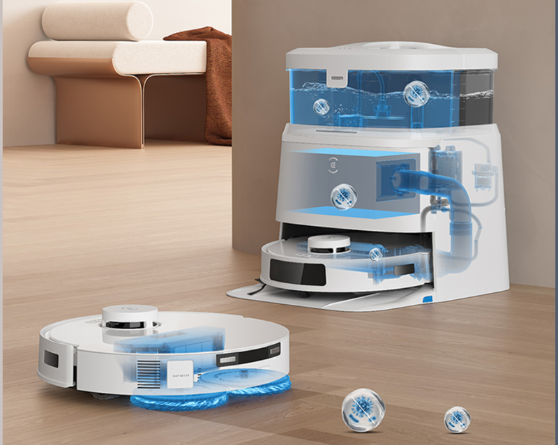 Ở phiên bản tự động bơm xả, trạm mang lại sự tiện lợi tối đa với khả năng tự động thêm nước sạch, xả nước bẩn và thêm dung dịch làm sạch. Trạm sạc của robot hút bụi với thiết kế nắp phía trước, giúp việc thay mô-đun ion bạc trở nên cực kỳ thuận tiện. Sau mỗi lần giặt giẻ, chỉ cần một nút nhấn để máy tự động rửa khay đế và hút nước bẩn, tiết kiệm đáng kể thời gian của bạn, biến việc dọn dẹp trở nên hoàn toàn tự động.
